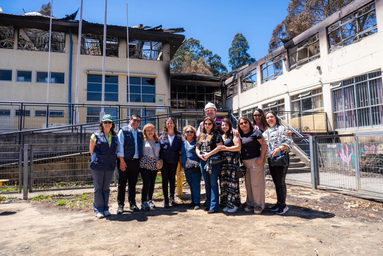 La ministra (s) de Educación, Alejandra Arratia Martínez, junto al seremi de Educación del Biobío, Carlos Benedetti, visitaron establecimientos educacionales de las comunas de Penco y Tomé afectados por los incendios forestales, con el objetivo de monitorear el avance de las soluciones comprometidas y coordinar las acciones necesarias para el inicio del año escolar.